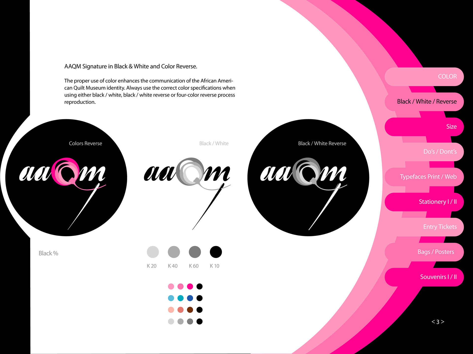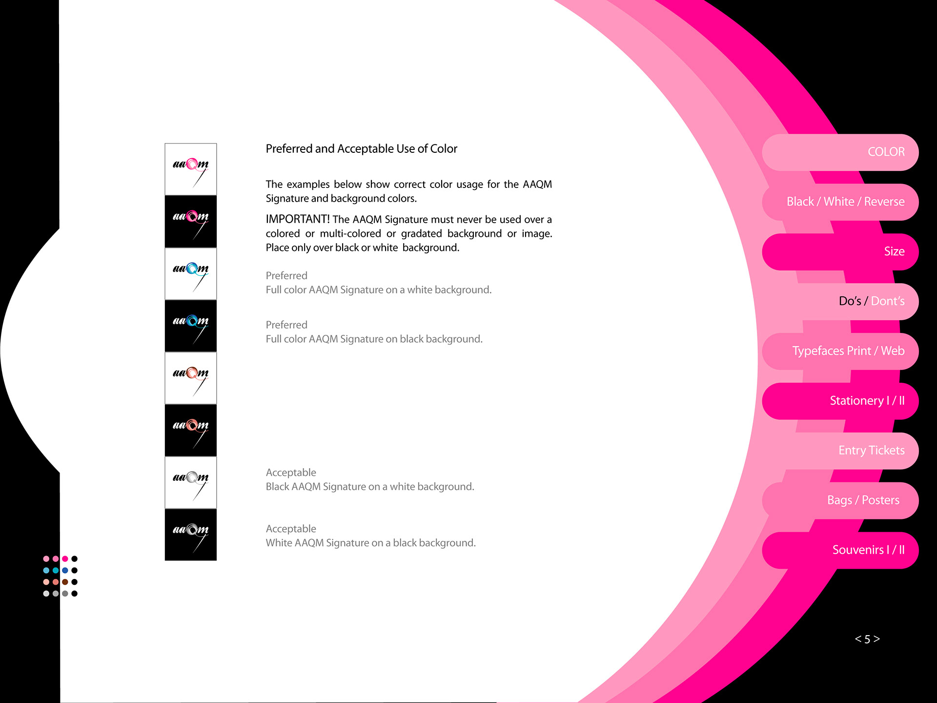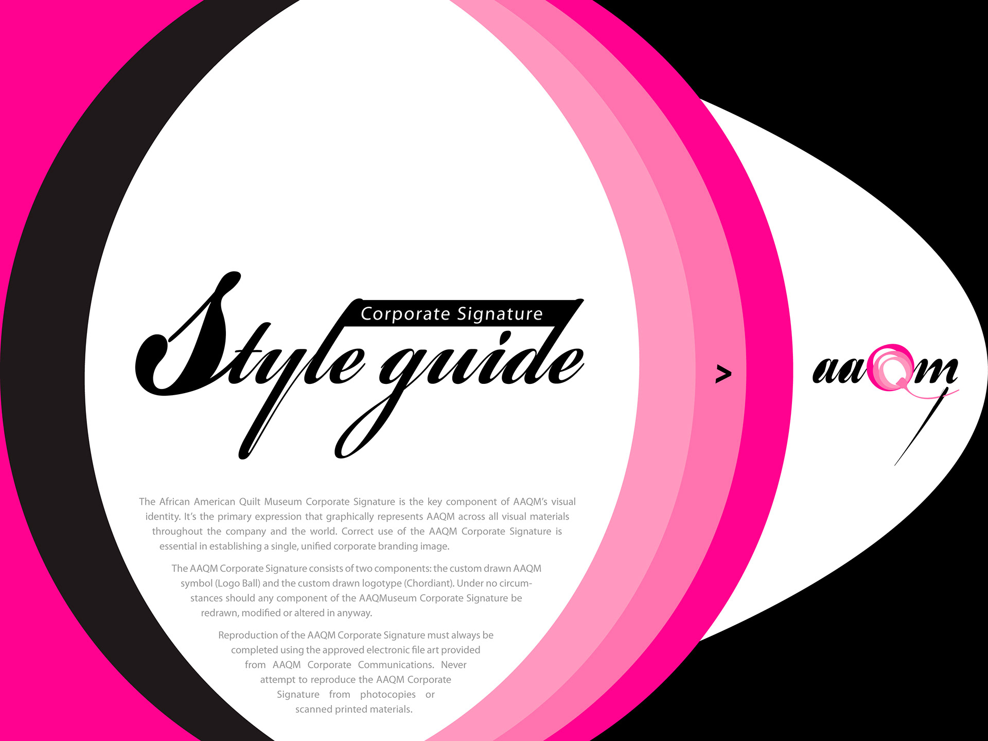 AAQM Signature Style Guide African American Quilt Museum, AAQM Signature Style Guide is the key component of AAQM’s visual identity. It’s the primary expression that graphically represents AAQM across all visual materials throughout the company and the world. Correct use of the AAQM Corporate Signature is essential in establishing a single and united image.
