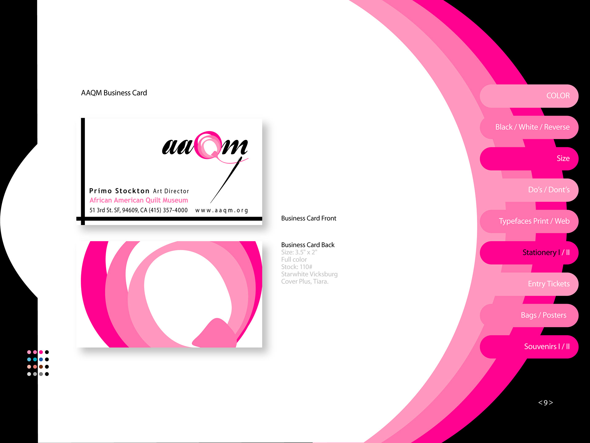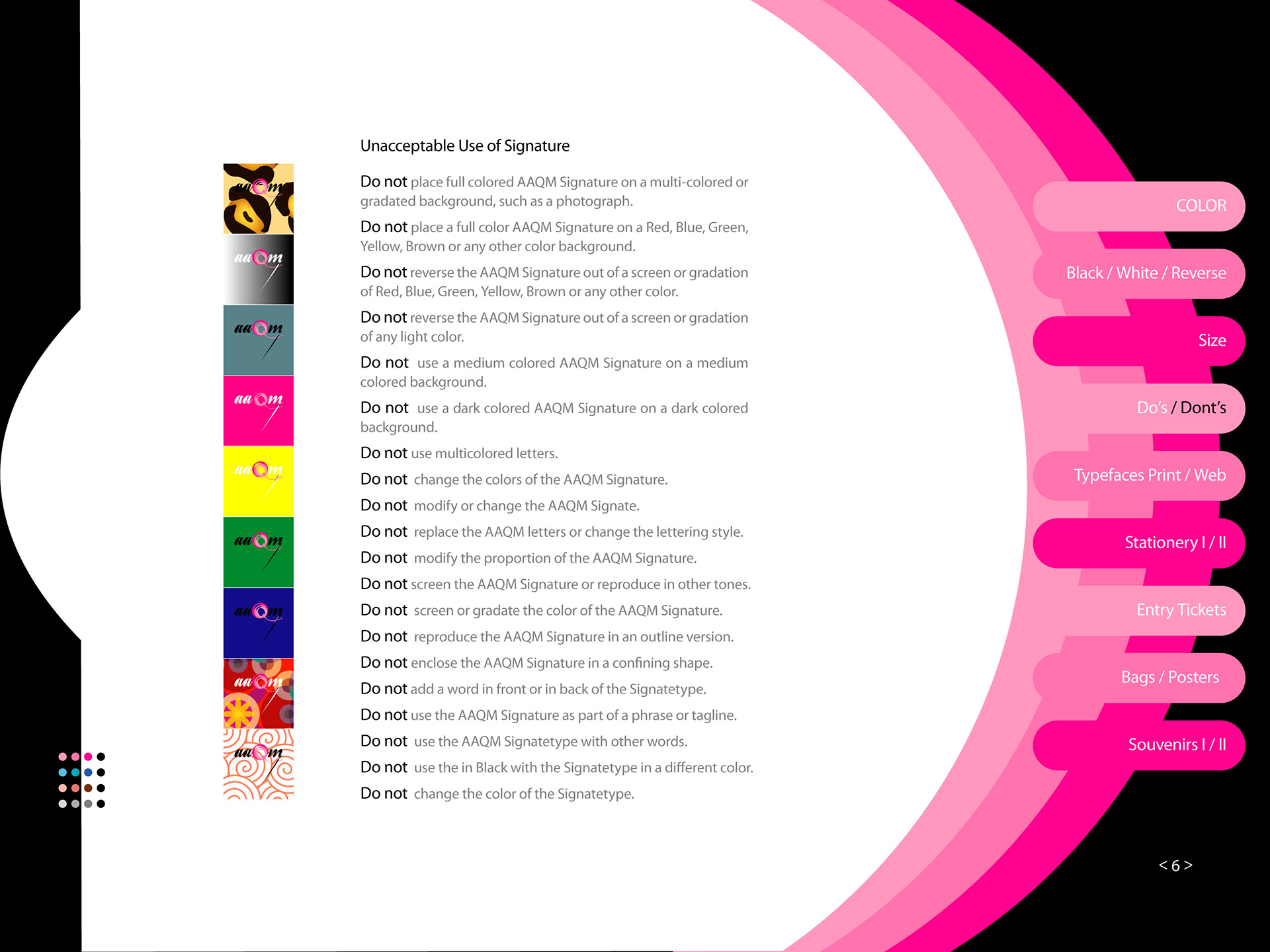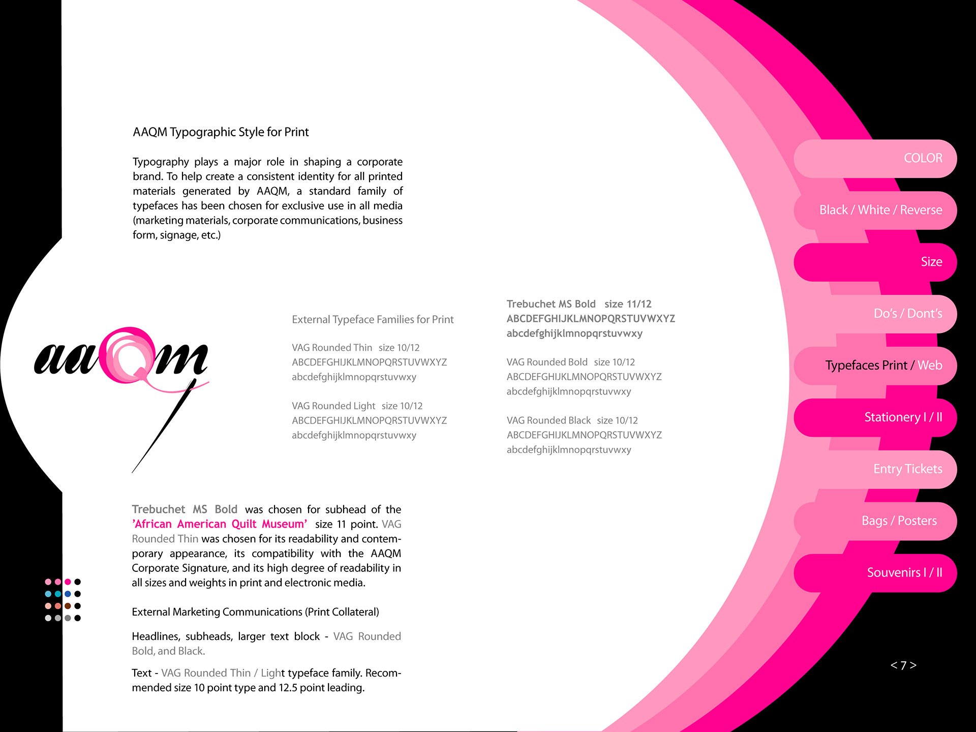AAQM Signature Style Guide African American Quilt Museum, AAQM Signature Style Guide is the key component of AAQM’s visual identity. It’s the primary expression that graphically represents AAQM across all visual materials throughout the company and the world. Correct use of the AAQM Corporate Signature is essential in establishing a single and united image.